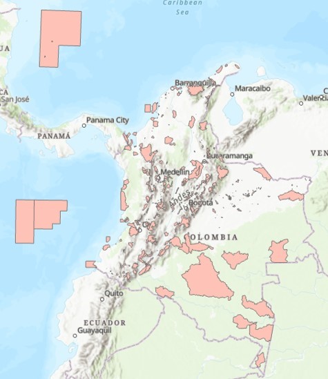 Description: Este servicio cuenta con los datos de los límites de áreas protegidas, Registro Nacional de Colecciones Biológicas - RNC y el Registro Único de Áreas protegidas - RUNAP. Esta información es suministrada y actualizada por Parques Nacionales Naturales de Colombia; Contiene 14 clases de áreas de reserva o suelos de manejo especial: Área Natural Única, Áreas de Recreación, Distritos Nacionales de Manejo Integrado, Distritos Regionales de manejo integrado, Distritos de Conservación de Suelos, Parque Nacional Natural, Parques Naturales Regionales, Reserva Natural, Reserva Natural de la Sociedad Civil, Reservas Forestales Protectoras Nacionales, Reservas Forestales Protectoras Regionales, Santuario de Fauna, Santuario de Fauna y Flora