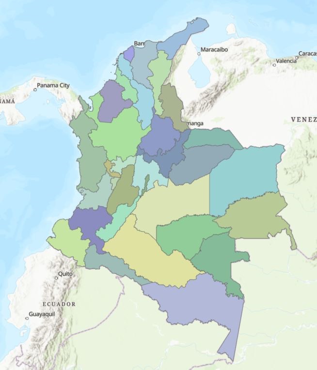 Description: <DIV STYLE="text-align:Left;"><DIV><DIV><P><SPAN>Representación cartográfica de la extensión territorial del departamento perteneciente a la división político-administrativa de Colombia. La fuente básica del nivel geográfico corresponde a la capa geográfica suministrada por el Instituto Geográfico Agustín Codazzi (IGAC). La geometría del objeto geográfico es polígono. En Colombia actualmente hay 32 departamentos, no obstante, con fines censales Bogotá, D. C. se codifica como departamento, quedando 33 polígonos en el nivel geográfico. </SPAN></P><P><SPAN>Los datos son puesto a disposición en el Marco Geoestadístico Nacional: https://geoportal.dane.gov.co/servicios/descarga-y-metadatos/descarga-mgn-marco-geoestadistico-nacional/#gsc.tab=0 </SPAN></P></DIV></DIV></DIV>